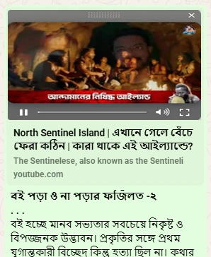 সভ্যতা থেকে যারা দূরে, তারা কি কিতাব না পেয়ে অসুখী? আমার তা মনে হয় না কখনো। যেমন ধরেন, আমাদের বঙ্গোপসাগরে নর্থ সেন্টিনেল নামে একটি দ্বীপ রয়েছে। ভারতের আন্দামান-নিকোবর দ্বীপপুঞ্জের নিকটবর্তী এই দ্বীপ। সেখানে নর্থ সেন্টিনেলিজ নামে এক আদিম ও প্রাগৈতিহাসিক মানব গোত্রের বসবাস রয়েছে বলে আমরা জানি।