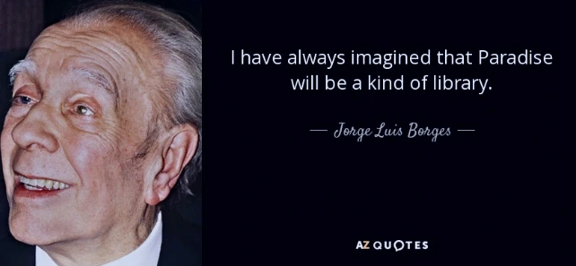 একটি বই পকেটে বহন করা একটি বাগানকে বহন করার মতো।—এমন-একটি রূপকধর্মী কথা উদ্ধৃত হতে দেখা যায়। জনি না, এই কথাটির আদি উৎস কোন ভাষায়। একটি বাগানের সঙ্গে বইয়ের তুলনায় মনে পুলক জাগে। প্রথিতযশা লেখক হোর্হে লুইস বোর্হেসের কাছে যেন জ্ঞান ও কল্পনার অফুরন্ত সম্ভার লাইব্রেরি ছিল অনন্ত সুখের ঠিকানা; তাই বলতে পেরেছিলেন, I have alwayas imagined that Paradise will be kind of library. (আমি সবসময় ভেবেছি, স্বর্গ হয়তো একটা লাইব্রেরির মতোই হবে)। বোর্হেস নিজেও লাইব্রেরিতে কিউরেটর হিশেবে কাজ করেছেন বহু বছর। জীবদ্দশায় দৃষ্টিশক্তি হারানোর পরেও বইয়ের প্রতি তাঁর নিবেদন অটুট ছিল।