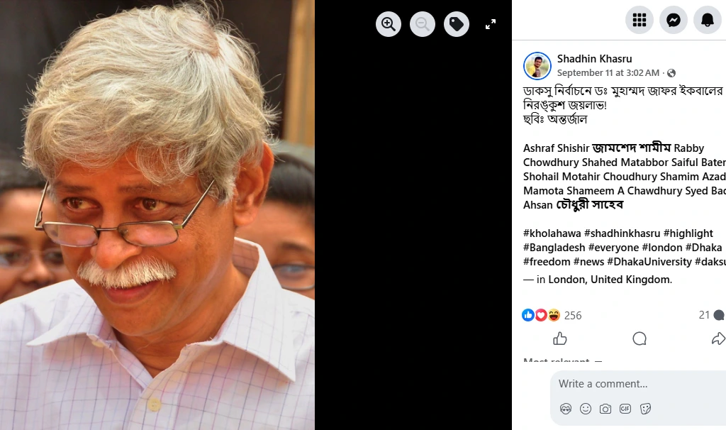 ডাকসু নির্বাচন নিয়ে অভিনেতা স্বাধীন খসরুর ক্যাপশনটি সময় প্রাসঙ্গিক। মুক্তিযুদ্ধের প্রশ্নে ডঃ মুহম্মদ জাফর ইকবালকে আমরা কখনো ক্রিটিকাল হতে দেখিনি। একাত্তর সবসময় তাঁর কাছে বেঞ্চমার্ক ছিল। এর সাহায্যে শত্রু-মিত্র বুঝে নিতেও দেখেছি তাঁকে। বাংলাদেশ রাষ্ট্রের প্রসব বেদনায় যারা বিরোধিতা করে থেমে থাকেনি, নারকীয় নিপীড়নে ভূমিকা রেখেছে প্রত্যক্ষ,—জাফর ইকবালের কাছে তারা প্রতিপক্ষ থেকেছে সবসময়। একবার এক অনুষ্ঠানে তাঁকে বলতে শুনেছিলাম,—আমার কাছে শত্রু-মিত্র চেনার মাপকাঠি হলো একাত্তর। একটি লোক যখন দেশের স্বাধীনতা অর্জনের ঘটনাকে অযথা বিতর্কিত করে, সে আমার প্রতিপক্ষ, এবং ওই লোকটি রাজাকার।