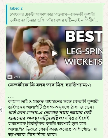 আলাপটি সুষম নয়। একাধিক জায়গায় দেখবেন কামাল ভাই ও মারুফ রায়হান (বিশেষত বাংলাদেশের কবিলেখকদের ব্যাপারে) বেশ সুবোধ বালকের মতো ফ্লিপার দিয়েছেন। বল পিচে নিচু করতে কবজি ঘুরিয়েছেন দুজন। কেতকীকে এটি বেশ বিব্রত ও বিভ্রান্ত করেছে। আই এনজয়! গুগলি, স্পিনের আসলি জাদু, যার জোরে আব্দুল কাদির ও শেন ওয়ার্ন ঈশ্বর আজো… অথবা অফস্পিনার হয়েও যিনি লেগ স্পিনারদের মতো ধাঁধা জন্ম দানের কারণে সুমহান… সেই মুরালিধরনের কারিশমা ‘দুসরা’… এগুলা দুজনে কম দিয়েছেন। যেখানে দিয়েছেন, কেতকী কিন্তু সেখানে হার মানেননি;—বল খেলেছেন… এইটা মানতেই হবে।