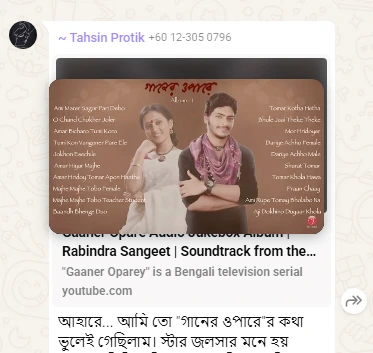 আহারে…! আমি তো গানের ওপারে-র কথা ভুলেই গেছিলাম। স্টার জলসার মনে হয় একটাই সিরিজ ছিল যেটা আমি দেখেছিলাম। তখনই পপ-রবিগানের সথে ঘটা করে একটা পরিচয় আর ভালোবাসাও জন্মায়। এই সিরিজের প্রত্যেকটা গানই আমার-যে কী ভীষণ ভালো লেগেছিল!