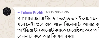 মোহাম্মদ তাওকীর ইসলাম ওই-যে একেবারে অপেশাদার অভিনেতাদের নিয়ে রাজশাহী শহরের পেটের ভিতরে বসে ওয়েব সিরিজটা বানালেন,—কাহিনি, সিনেমাটোগ্রাফি, ল্যাঙ্গুয়েজ ও অ্যনার্জির দিক থেকে এইটা দশে দশ পাওয়ার মতো কাজ ছিল। শাটিকাপ, সোজা কথায় লা-জবাব লেগেছিল দেখে!
