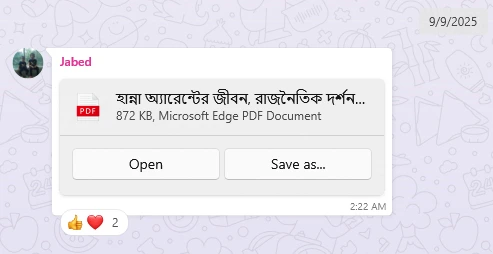 উপভোগ্য আলোকপাত জাভেদ। হানা আরেন্ট আমাদের এখানে সুপরিচিত হলেও তাঁর দার্শনিক গভীরতা নিয়ে চর্চা ব্যাপক নয়। কিছু বইপত্র অনূদিত হয়ে থাকতে পারে, কিন্তু বড়ো স্কেলে তাঁকে নিয়ে আলাপ কানে আসেনি। এখানে যাঁরা হাইডেগার আওরান বেশ, তাঁদের জন্য হানা আরেন্ট যদিও অপরিহার্য হওয়ার কথা ছিল। যাইহোক, আপনার এই পরিচিতিমূলক আরেন্টপাঠ প্রাসঙ্গিক জায়গাগুলো ছুঁয়ে গেছে। বিশেষ করে, আইখম্যানের বিচারের সময় ব্যানালিটি অব ইভিল নিয়ে তাঁর ভাবনা কেবল সাহসী ছিল তা নয়,—সকল প্রত্যাশা ও স্রোতের বিপরীতে দাঁড়িয়েছিলেন হানা।