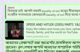 জার্মান চলচ্চিত্রকার মার্গারেট ভন ট্রোটা তাঁর হানা আরেন্ট মুভিতে ঘটনাটি দারুণভাবে ফুটিয়ে তুলেছিলেন। ব্যানালিটি অব ইভিল-এর ভাবুকতায় পৌঁছানোর ধাপে হাইডেগারকে ফিরে-ফিরে স্মরণ করছেন হানা, যেন তিনি এই ভাবুকতায় পৌঁছানোর প্যারামিটার। মার্গারেট ছবিতে তা ভালো তুলে ধরেছিলেন। সময় করে দেখতে পারেন ছবিটি। ইউটিউবে খোঁজ করলে পাবেন। শেখ হাসিনার পতন ঘটার গোড়া দিকটায় ফ্যাসিস্ট প্রসঙ্গে গ্রুপে নিত্য হইচই হতো। চ্যাট জিপিটি মামার ফ্যাসিস্ট বন্দনা শিরোনামের এক লেখায় ব্যানালিটি অব ইভিলকে তখন আমরা টাচ করে গেছি কিছুটা। এখন তা ইয়াদ হচ্ছে বটে!
